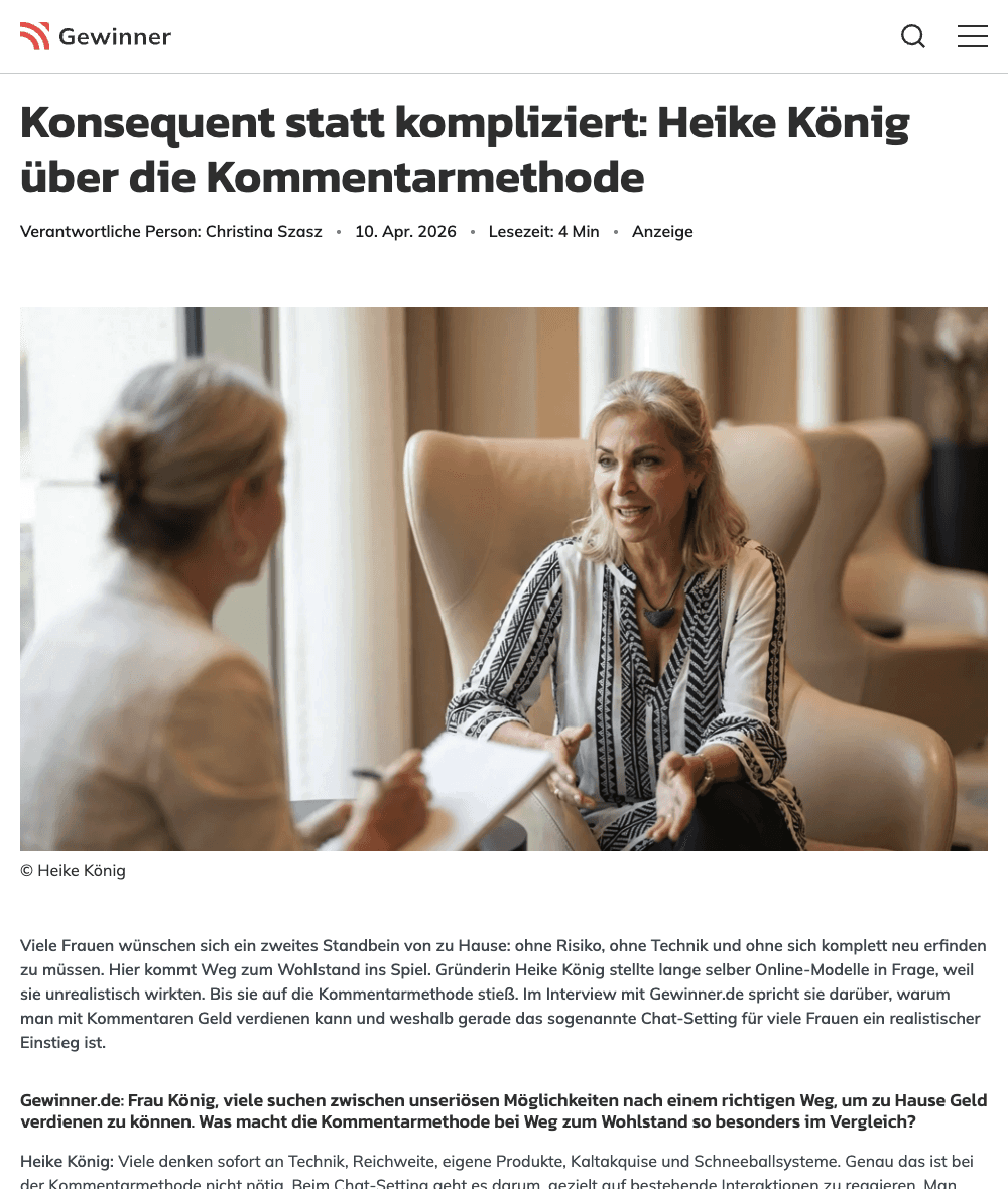 Die Tochter verdiente bereits online Geld – durch das Beantworten von Kommentaren auf Social Media. Eines Tages sagte sie: „Mama, versuch das doch mal.“ Heikes erste Reaktion war Skepsis: „Das ist doch was für die Jungen.“ Sie probierte es trotzdem – und war überrascht, wie simpel es war.